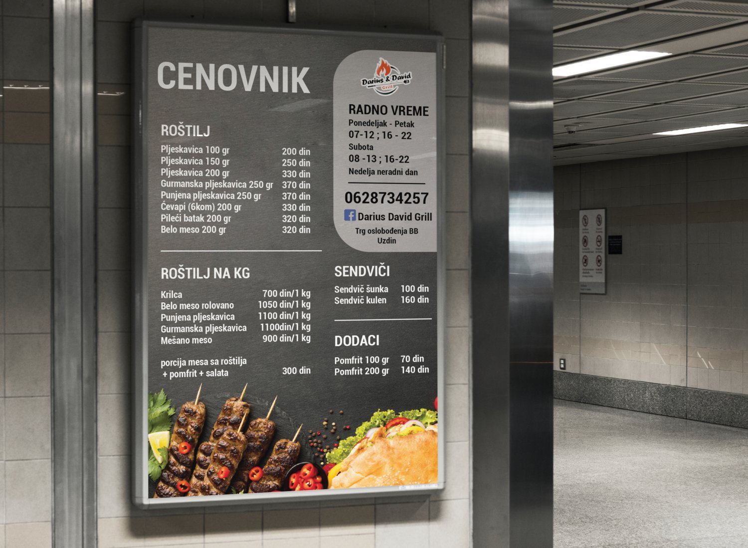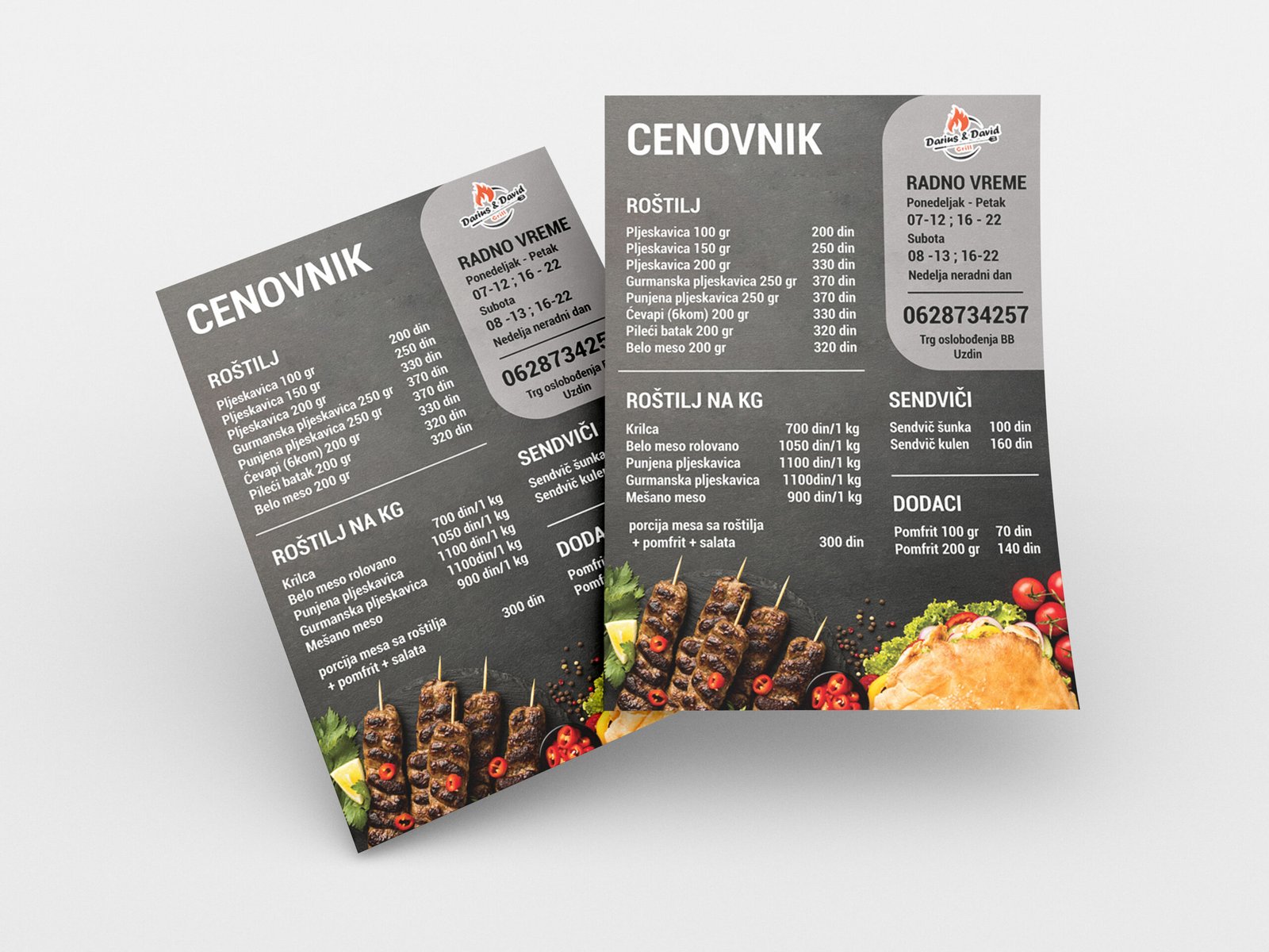 Grafički dizajn menija i promotivnih materijala za fast food objekat