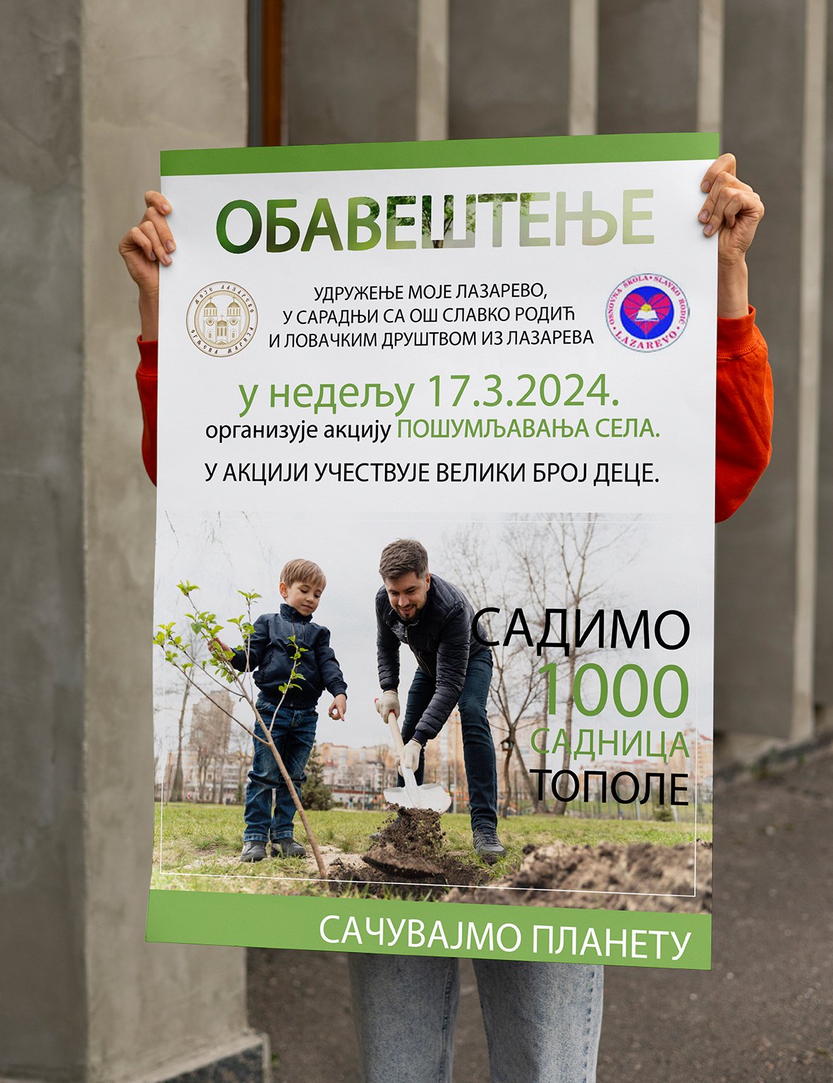Projekat obuhvata dizajn postera i zastavica namenjenih promociji akcije pošumljavanja, sa akcentom na jasnu poruku, prepoznatljivu simboliku i primenu u spoljašnjem prostoru.